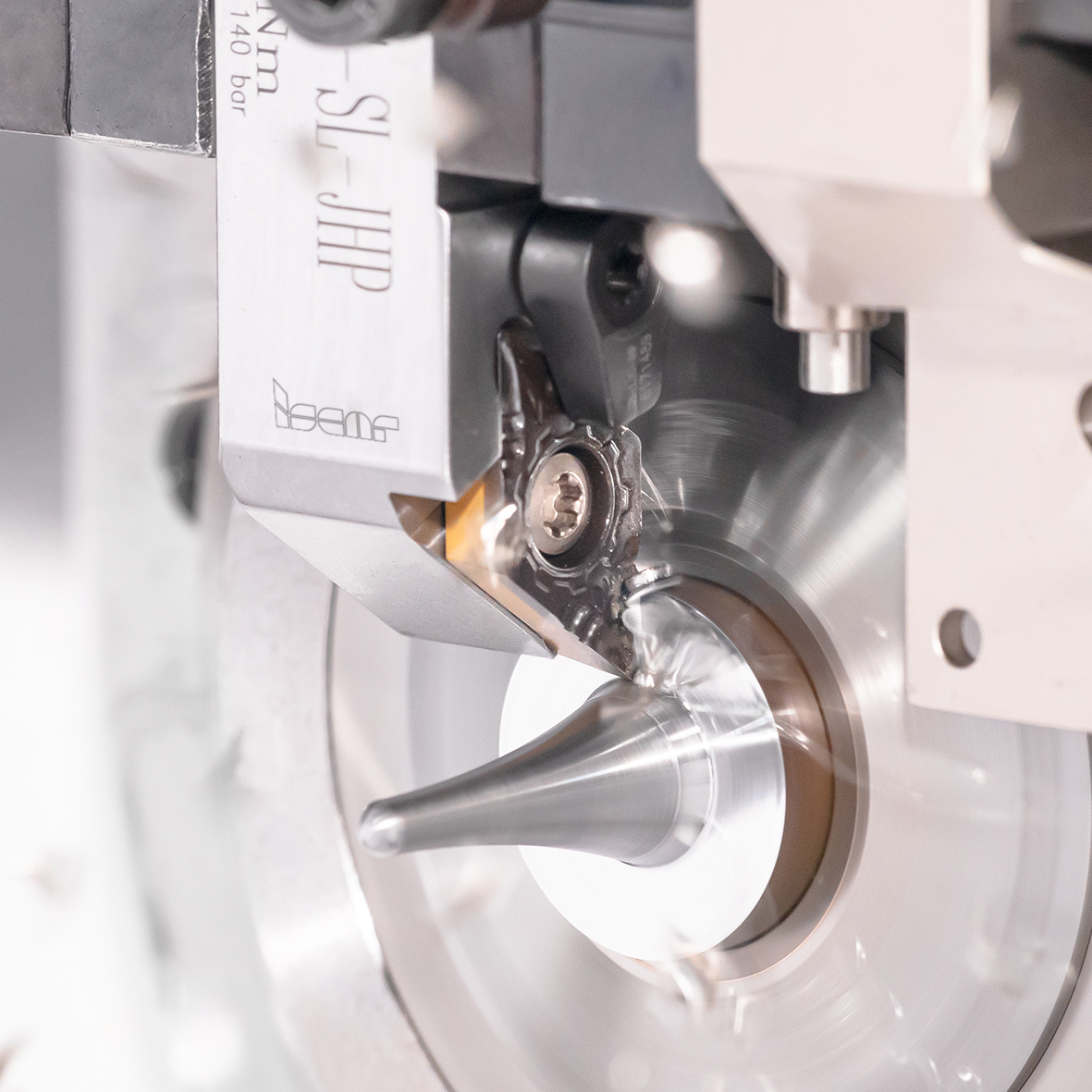 Swiss-type, and live-tooling lathes are the most efficient machining tools for cutting operations required