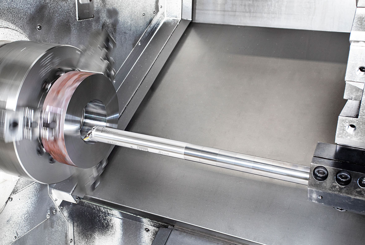 WHISPERLINE boring bars (Fig. 4) have a built-in antivibration mechanism with an auxiliary mass immersed absorbent. The bars facilitate stable cutting at high overhangs. ISCAR has expanded bar clamping solutions by power chucks with polygonal taper adaptation according to ISO 26623, holders with VDI adaptation, and sleeve-type tool blocks.