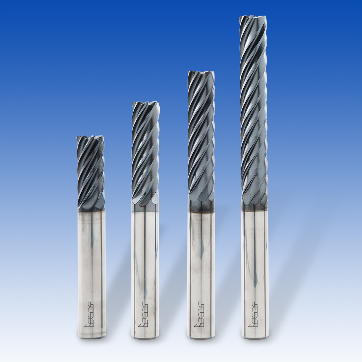 The CHATTERFREE EC-E7/H7-CF is a new family of multi-flute solid carbide endmills, which are intended specially for trochoidal milling techniques. The geometrical design of the family includes different helix angles and variable angular pitches to improve dynamic behavior. These endmills are available in a range of cutting length-to-diameter ratios (Fig. 1).
